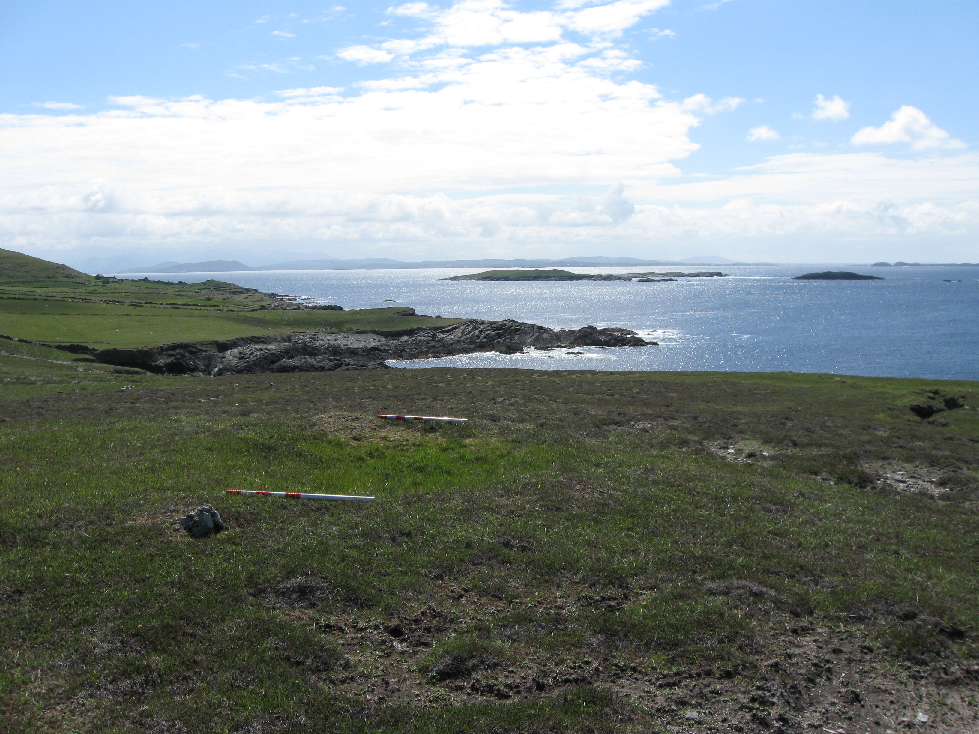 Bronze Age Coastal Adaptations – As part of the Cultural Landscapes of the Irish Coast project, this project has focused on the development of island adaptations to seemingly marginal environments during the Bronze Age. Using a combination of archaeological survey, excavation, and chronological modeling of Bronze Age occupations on the islands of Inishark and Inishbofin, located in the Atlantic Ocean off the Connemara coast in Galway. This work on small-island occupations, most recently highlighted in a publication in the European Journal of Archaeology (find a copy here) has provided unique insight into the development of large regional centers and long-distance maritime exchange systems during the Bronze Age.